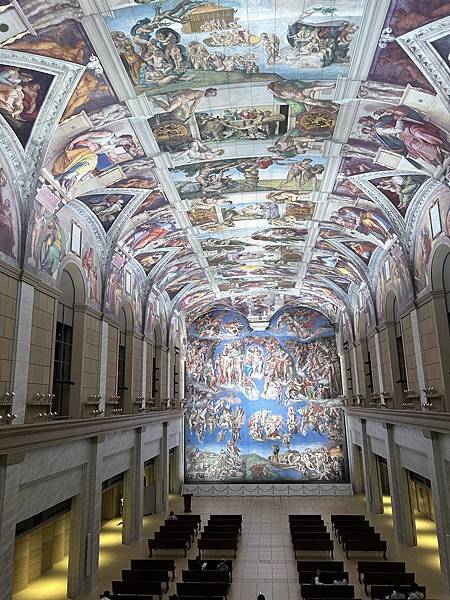 ↓這是西斯廷展廳必逛之處,重現米開朗基羅在梵蒂岡西斯廷教堂描繪的屋頂畫及壁畫」。
