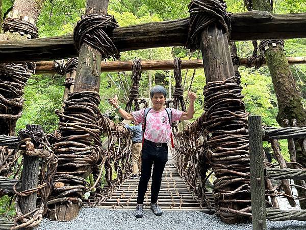 當你踏上德島縣深山裡的祖谷蔓藤橋(祖谷のかずら橋),就像走進了一段古老傳說的實境體驗!這座橋可不是什麼現代鋼筋水泥,而是由野生藤蔓編織而成的「原始系吊橋」,橫跨在清澈見底的祖谷溪谷之上。走上去的那一刻,你會先感受到一陣涼風吹過,伴隨著山林的清香與溪水的潺潺聲,就像是自然界在低語:「歡迎來到深山的試煉。」腳一踩上去,橋身就微微晃動,踩在木板上的每一步都得小心翼翼,因為板與板之間可是有不小的縫隙,下面就是湍急的溪流,讓人腳底發涼、心跳加速。藤蔓因歲月而略顯粗糙,雙手緊緊抓住兩旁的藤繩,整個人如電影主角般,正在探險一座遠古秘橋。過橋時,你不僅要小心翼翼看前方,你還要顧慮後面跟隨者,隨時得加快腳步,卻也不能太快,因為這座橋不只是晃,它還會「嘎吱嘎吱」唱,加上微微搖擺的節奏,活像橋在考驗你的膽量。