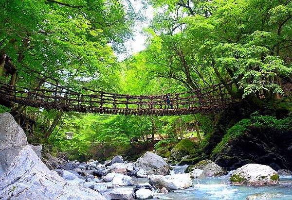 ↓離大步危小步危不遠,可順道遊祖谷蔓藤橋(祖谷のかずら橋),全長約45 m、寬2 m,高懸於清澈的祖谷川上方14 m,藤條與鋼索混編,每隔三年重建一次,被列為國家重要有形民俗文化財。